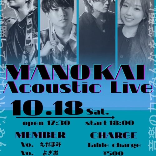 【OPEN】 17:30【START】 18:00【CHARGE】500円(+要2オーダー)※23歳以下の方…
