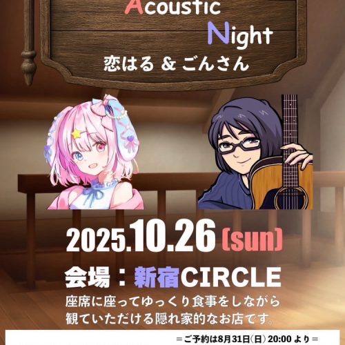 【OPEN】 19:00【START】 19:30【CHARGE】1,500円(+要2オーダー)※23歳以下…