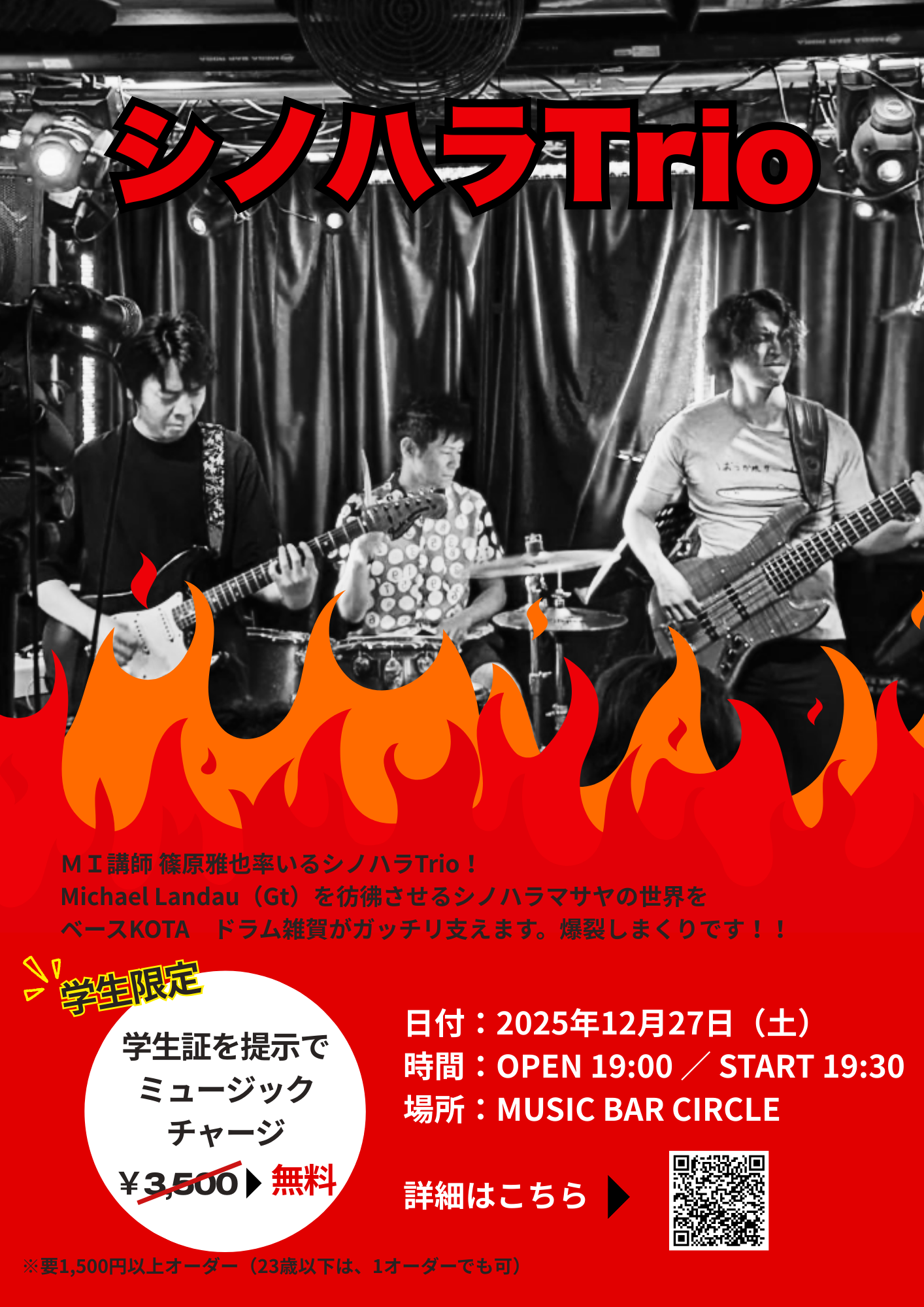 【内容】篠原雅也率いるシノハラTrio!Michael Landau(Gt)を彷彿させるシノハラマサヤの世界をベースKOTA・ドラム雑賀がガッチリ支えます。