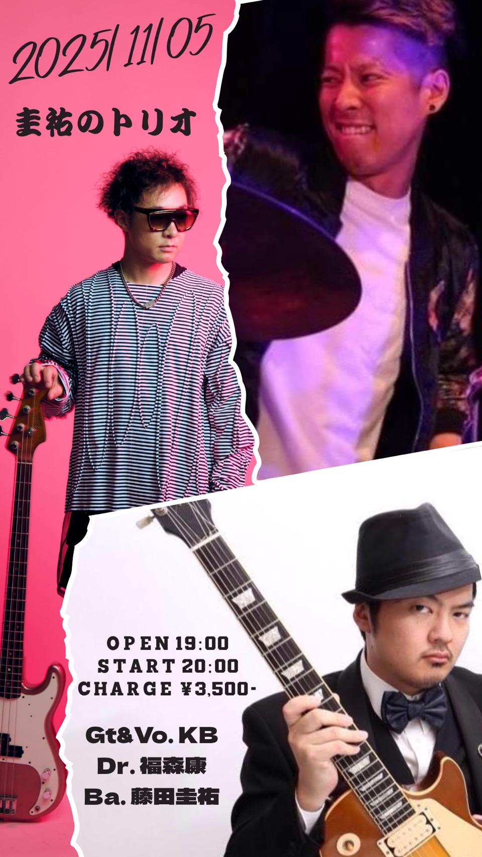 [圭祐のトリオ] 圭祐Birthday LIVE 11月 5 Wed 2025 CIRCLE OPEN 19:00 START 20:00 CHARGE ¥3,500- Gt&Vo. KB Dr. 福森康 Ba. 藤田圭祐 ■配信チケット販売ページはこちら↓ 準備でき次第告知させていただきます ---------- 【STAFF】Misaki・JuuN チケット予約 前のスケジュール 次のスケジュール