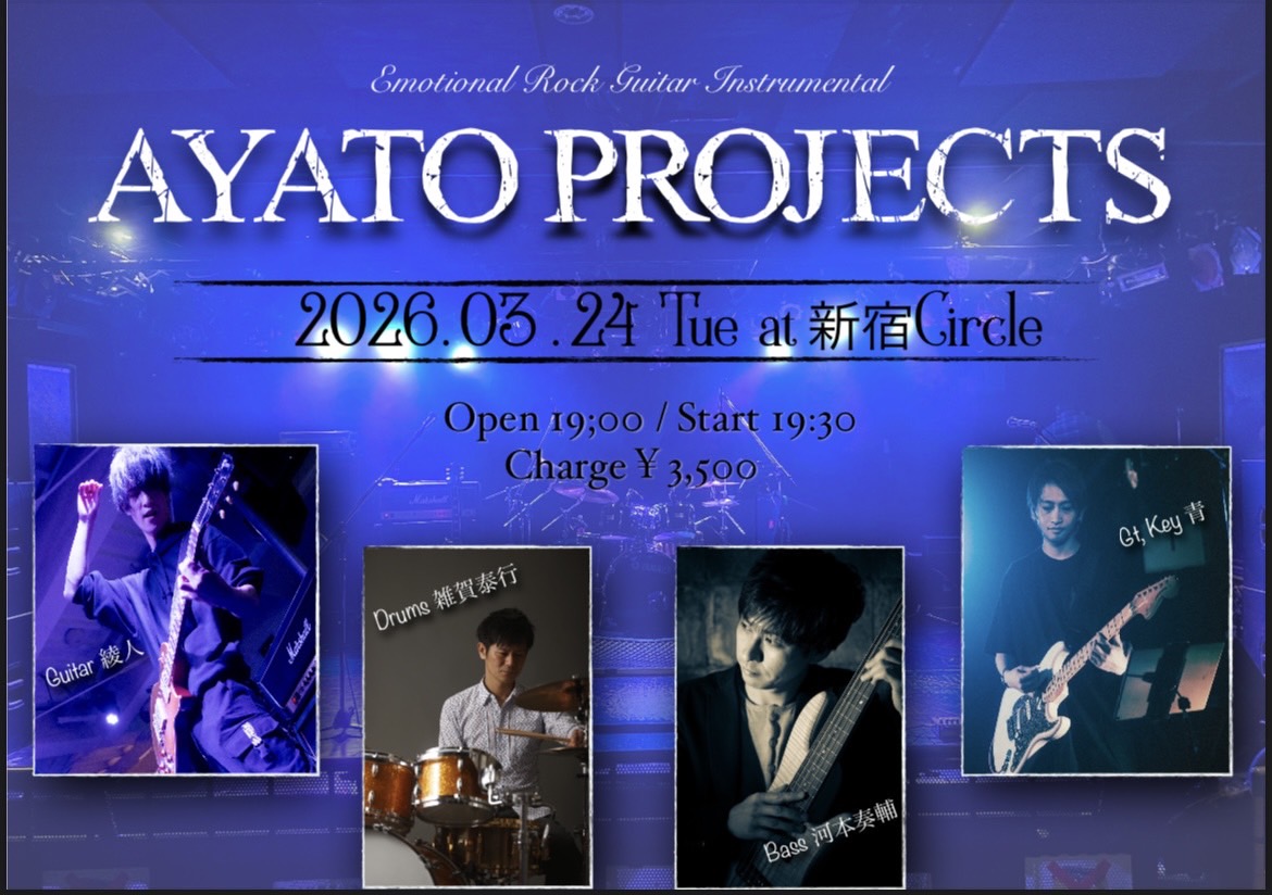 【内容】 AYATO、青のオリジナルソングを中心にメロディアスなロックをぶちかまします!